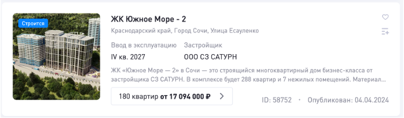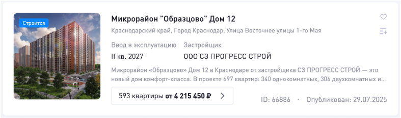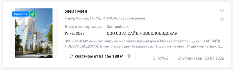 Система отслеживает проекты на ДОМРФ, фиксирует параметры объекта и выделяет релевантные контакты из доступных источников.
